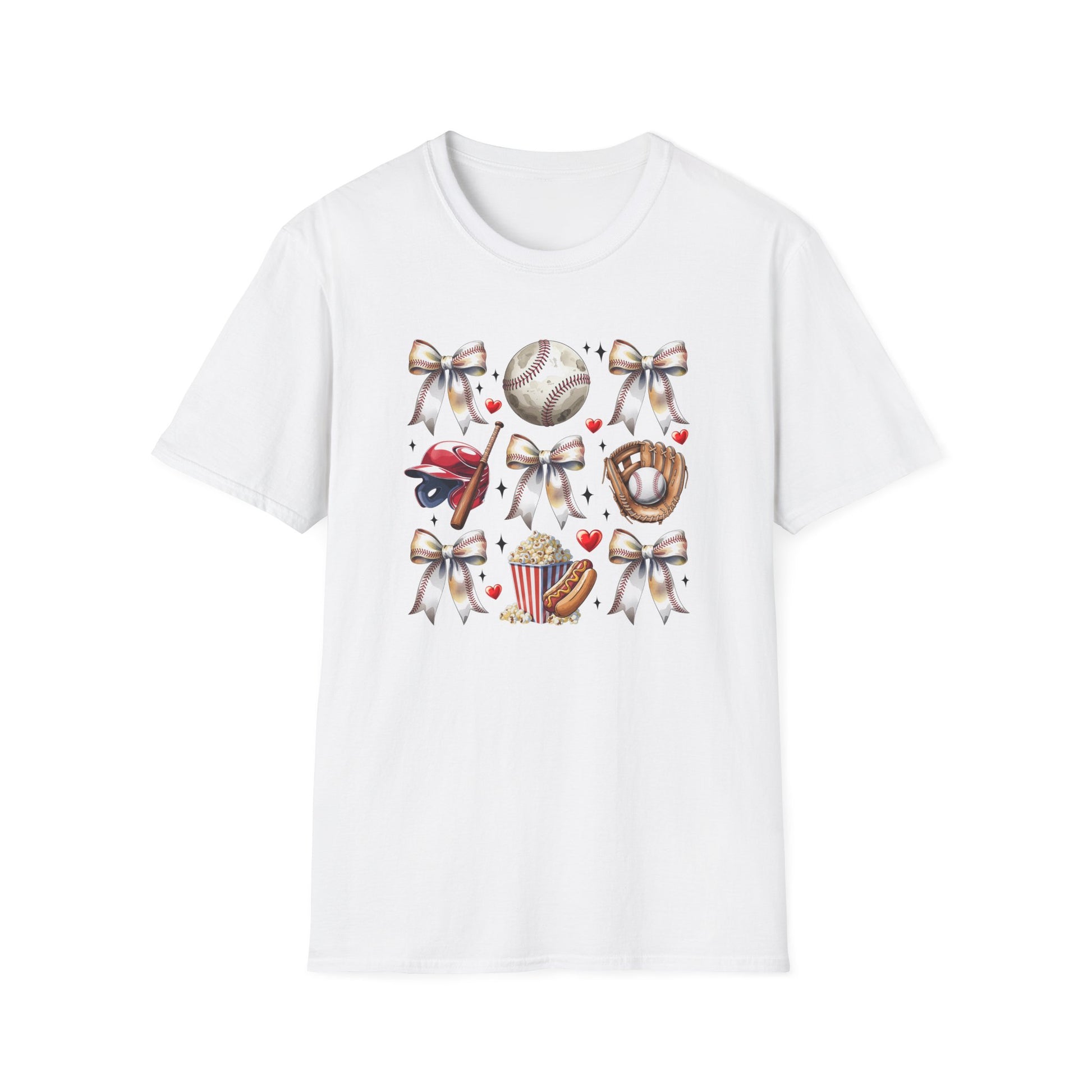 Baseball Mom Cute Gear T-Shirt — Helmet, Glove & Popcorn Sports Design
