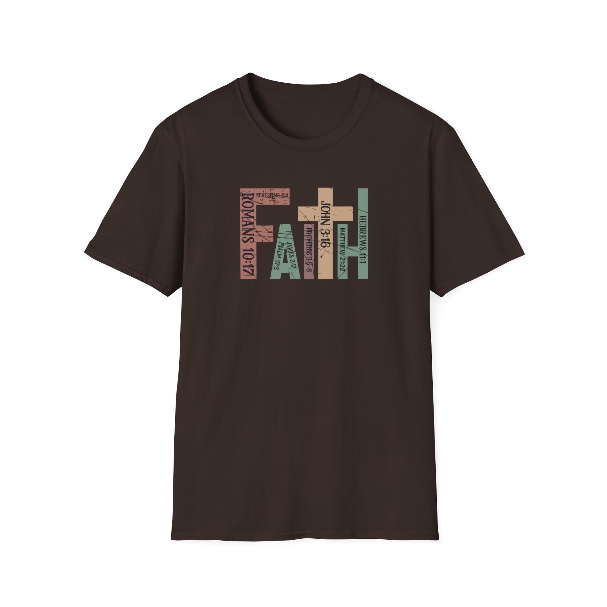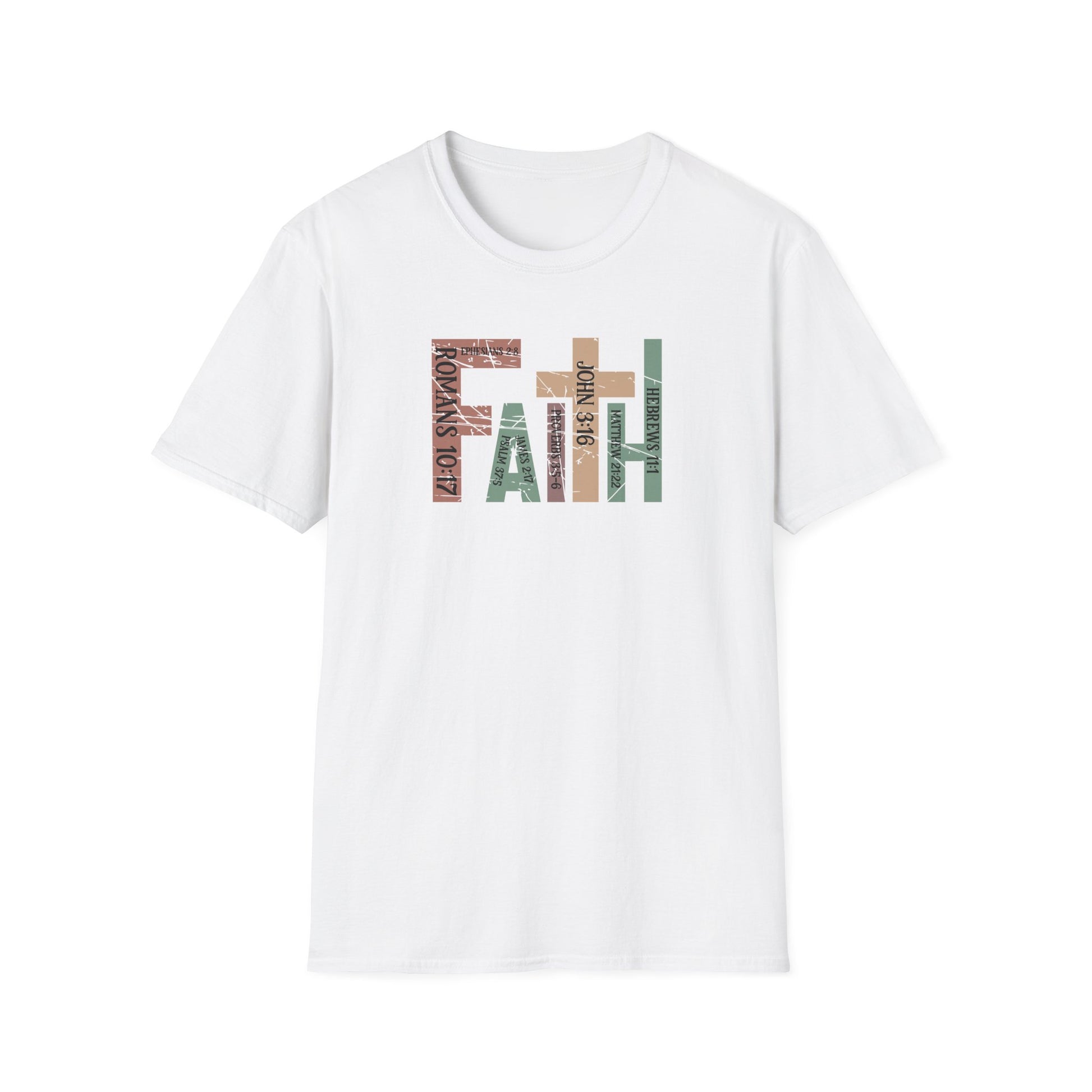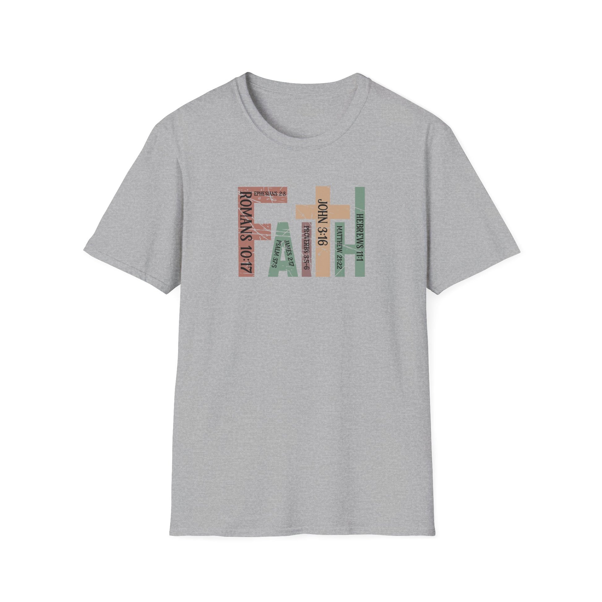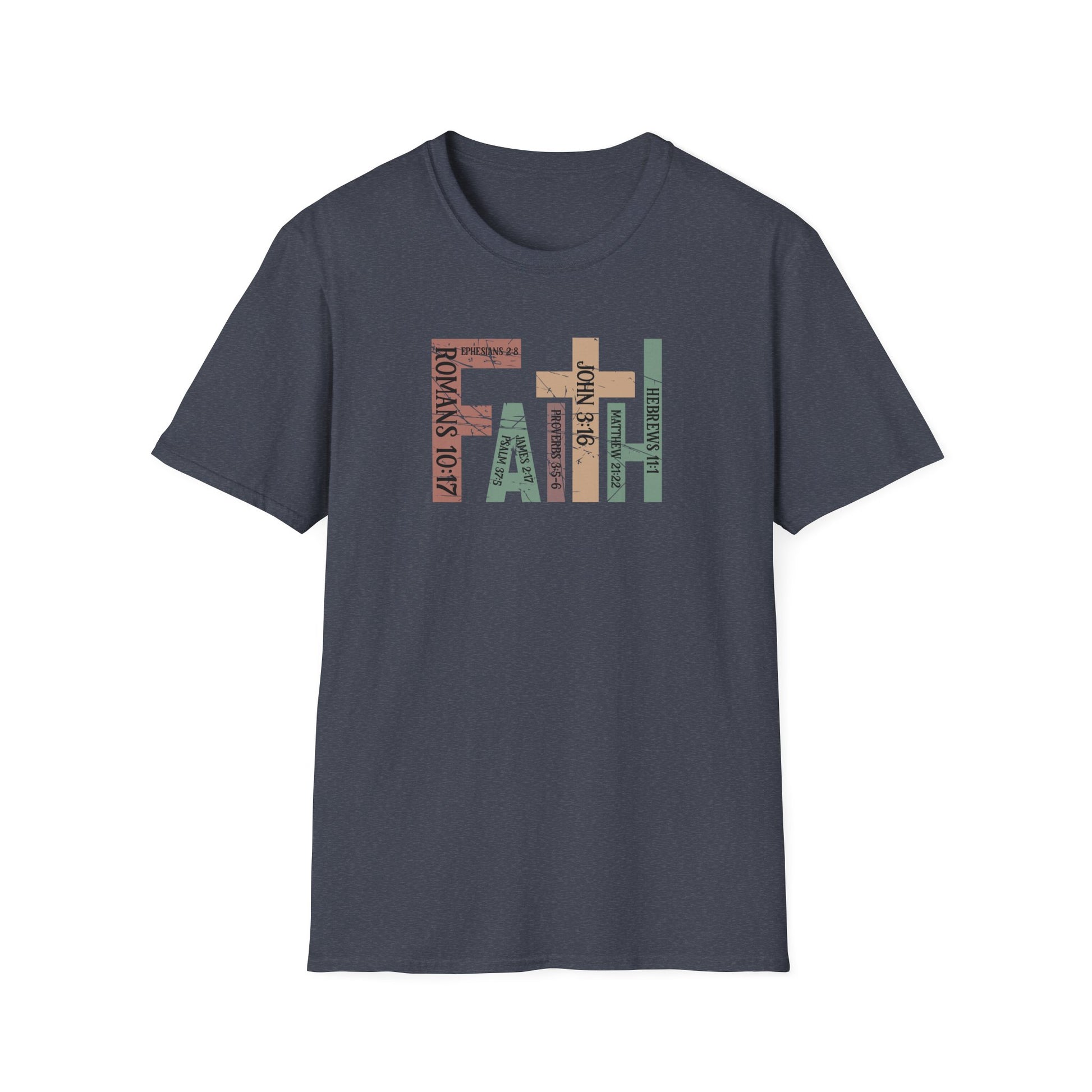 Faith Graphic T-Shirt — "Faith" with Cross & Bible Verse (Romans 10:17 / John 3:16)
