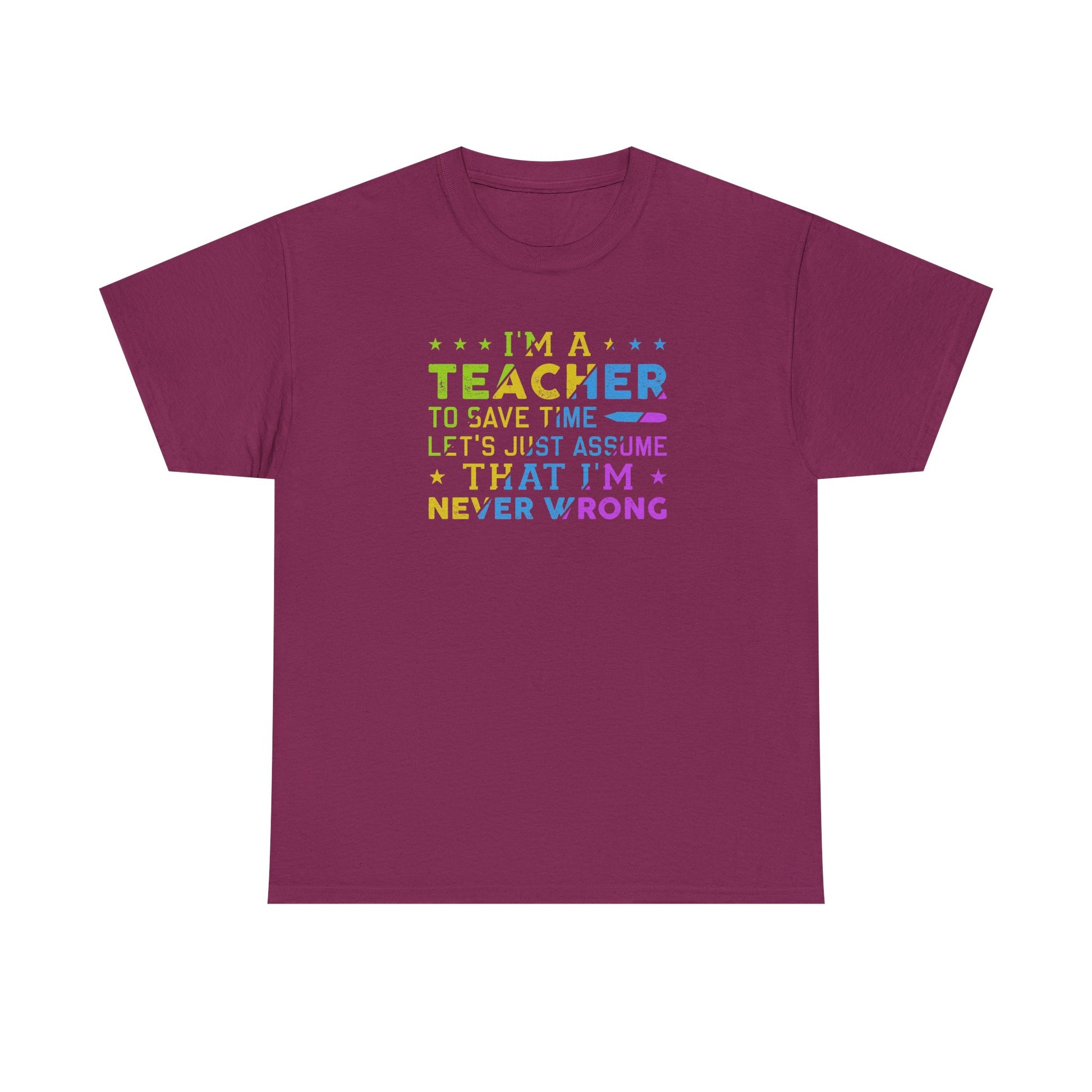 I’m A Teacher To Save Time Let’s Assume I’m Never Wrong Shirt | Funny Teacher T-Shirt | Back To School Teacher Tee | Classroom Humor Gift