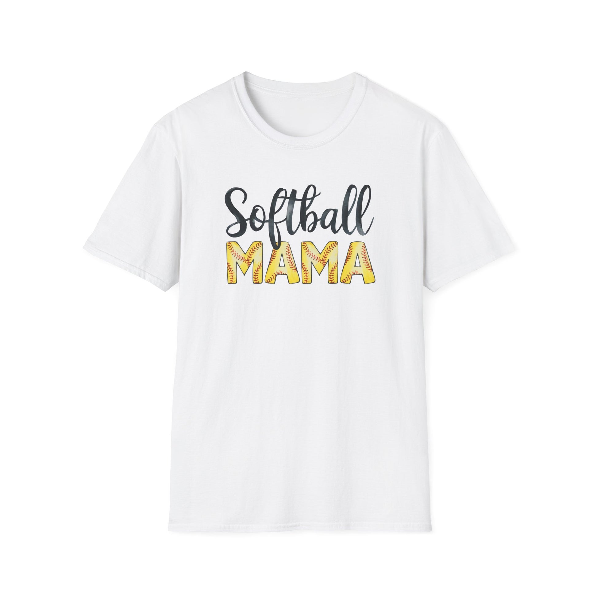 Softball Mama Shirt – Cute Script Softball Mom Graphic Tee, Yellow Softball Lettering Sports Shirt, Game Day Mom Apparel