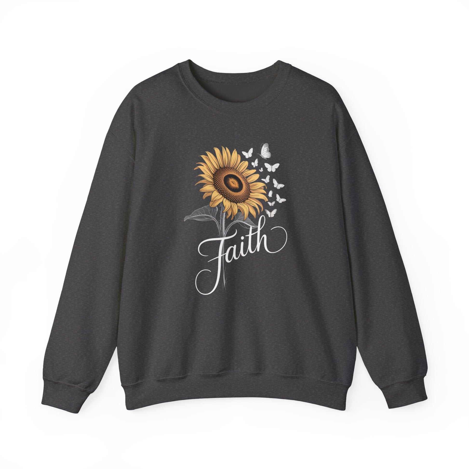 A soft, mid-weight crewneck sweatshirt featuring a hand-drawn sunflower illustration at the center chest. The artwork blends warm golden petals with subtle, faded details for a lived-in, vintage feel. Lightweight enough for layering, yet sturdy where it counts — ribbed collar, cuffs, and waistband hold shape. The breathable 50/50 cotton-poly blend and tubular knit body make this sweatshirt cozy for long walks, quiet mornings with coffee, or afternoons in a sunlit studio. It wears like a familiar companion: gentle, uplifting, and quietly confident. Embroidery options and printed neck/wrist details add a crafted touch for those who want a slightly more refined finish.