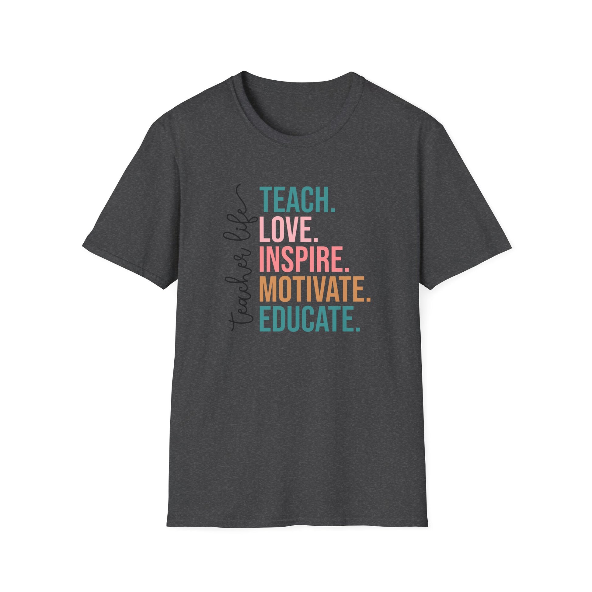 Teach Love Inspire Motivate Educate Shirt – Teacher Life T-Shirt – Inspirational Educator Gift – Cute Back to School Teacher Tee